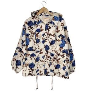 TORY BURCH Floral Print Hooded Wind Resistant Jacket