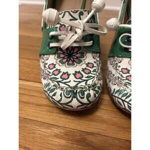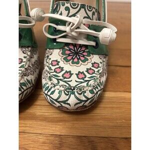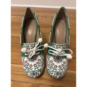 TORY BURCH Garden Party Fisher Loafer Pumps Kelly Green Floral Heels size 8.5