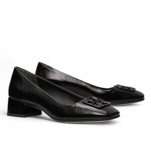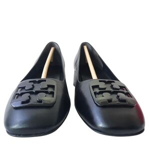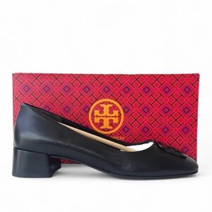 TORY BURCH Georgia Pump Black Square Toe Low Block Heel Leather Pump Logo Box 9