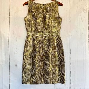 TORY BURCH Gold Silk Sleeveless Knee Length Sheath Dress Size 6