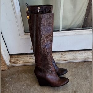 TORY BURCH Hendin Wedge boots a nice logo in good used condition