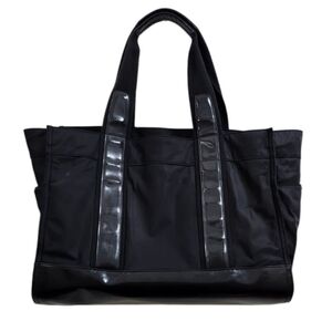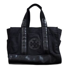 TORY BURCH Handbag/Nylon/Enamel/BLK/Black/Solid Color Black Nylon/Pate