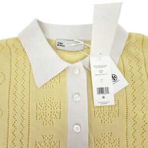 Tory Burch '70s-inspired long-sleeve polo sweater evolves with a textured heart pointelle pattern. Softly structured for a classic fit, the versatile layer adds a retro sensibility to jeans, trousers or spring's micro-mini skirts.