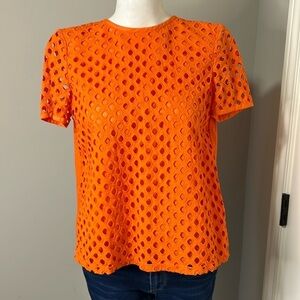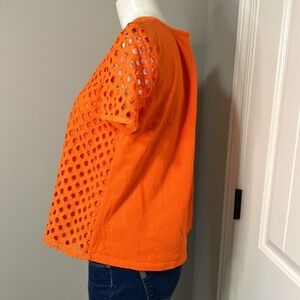 TORY BURCH Hermosa Eyelet Front Tee Embroidered Orange Flowy Sz 4
