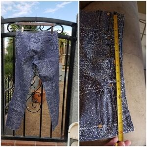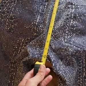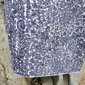 98% cotton, 2% spandex. Very flattering. Gorgeous blue and white pattern! No notable flaws—worn once!