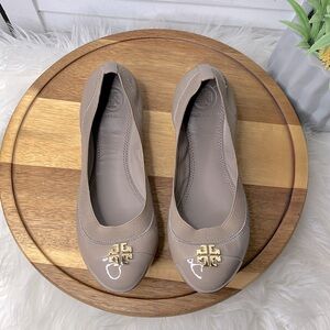 TORY BURCH Jolie Ballet Flats French Gray Casual Box Fall Neutral Size 6