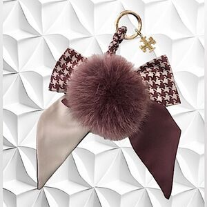 TORY BURCH KEY CHARM KEYCHAIN ACCESSORIES FOX FUR SILKY HANDBAG CAR KEYS