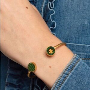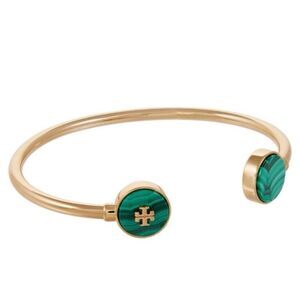 TORY BURCH KIRA SEMIPRECIOUS GREEN MALACHITE OPEN CUFF BRACELET 18K GOLD…