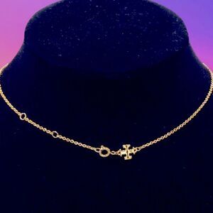 TORY BURCH KIRA ENAMELED PENDANT LOGO GOLD NECKLACE