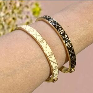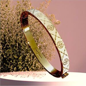 Stunning, Tory Burch lacquered Kira raise logo bracelet.