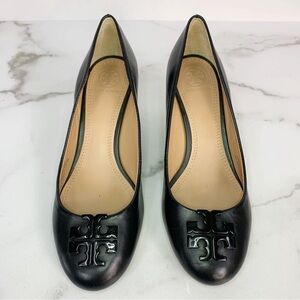 TORY BURCH LOWELL 65mm Black Lamb Leather Logo Closed Round Toe Wedge Pump 8