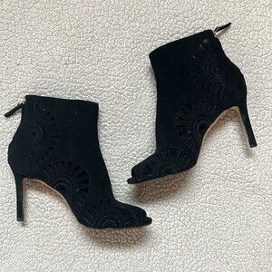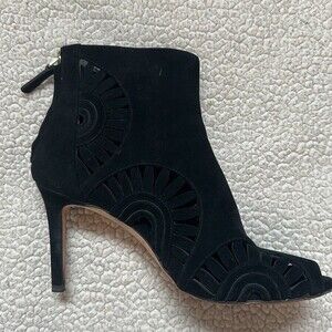 TORY BURCH Leyla Cut Out Geometric Bootie Royal Black Suede Stiletto Heels 7