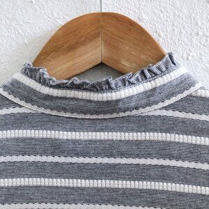 TORY BURCH Lidia Ruffle Trim Short Sleeve Striped Polo Size XS.