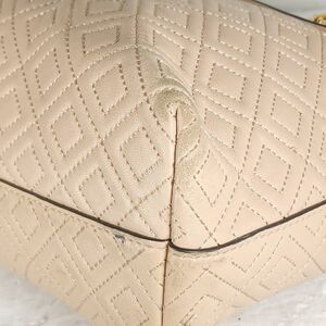 TORY BURCH Light Oak Fleming Diamond Quilted Small Gold Chain Tote Purse Bag