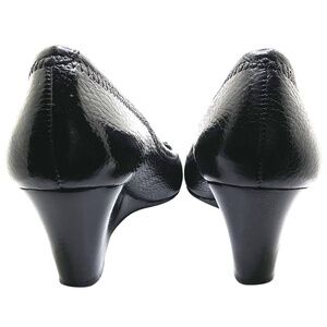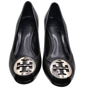 TORY BURCH Logo Wedges Heels Pumps Stilettos Leather Black Size 6