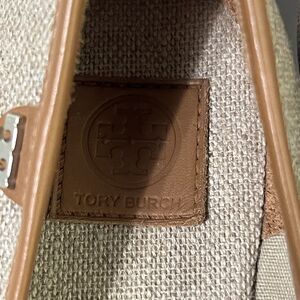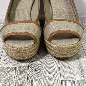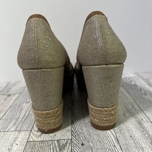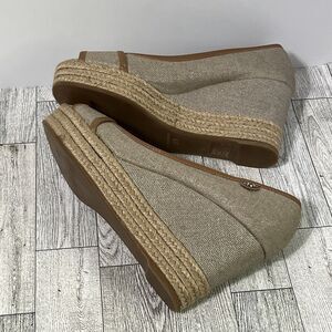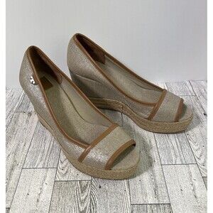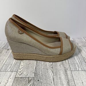 TORY BURCH MAJORCA Logo Wedge Espadrille Shoes Womens 8 EU 38 Plata Tan Metallic