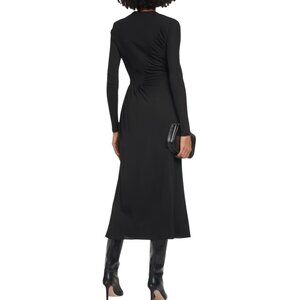 long-sleeved ruched-detail midi dress
