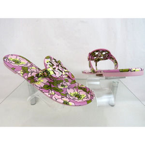 TORY BURCH MILLER BOLD FLOWERS PATENT LEATHER REVA FLAT THONG SLIDE SANDALS 7.5