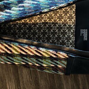 Elevate your fall and winter wardrobe with these stunning Tory Burch Miller Reva Riding Boots — a true statement of heritage craftsmanship and modern style. These knee-high boots feature a distinctive multicolor dogtooth tweed pattern in shades of navy, green, rust, and cream, perfectly complemented by smooth black leather at the foot and cuff.