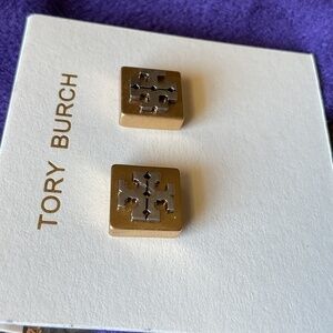 TORY BURCH MILLER LOGO GOLD/SILVER TONE STUD EARRINGS NEW WITH GIFT BAG