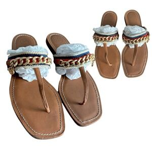 TORY BURCH MINI BENTON CHAIN BAND SANDAL CALF LEATHER SIZE 7.5 EUC