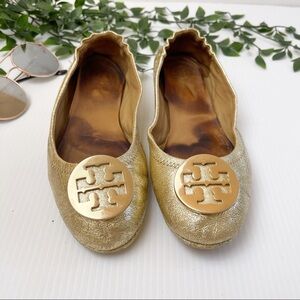 TORY BURCH MINNIE METALLIC LEATHER FOLDING FLATS size 7.5