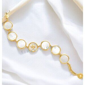 NWOT AUTHENTIC TORY BURCH WHITE SEMI PRECIOUS MOTHER OF PEARL STATION BRACELET