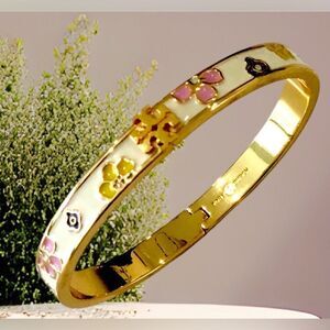 Tory Burch bracelet is a multicolored accessory that is ideal for any occasion, making it a great gift for someone special. Its lacquered enamel design adds a touch of elegance and it can be dressed up with silk dresses or down with jeans.