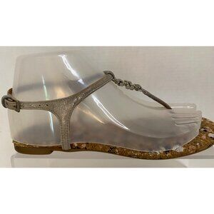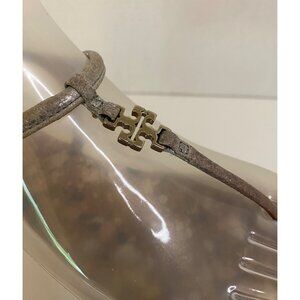 TORY BURCH Marion Confetti Quilted T-Strap Sandals Women 6M Silver Logo Shoes