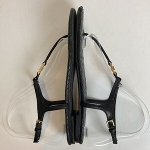 TORY BURCH Marion Quilted Black Leather T-Strap Gold Logo Sandals Size 8 summer