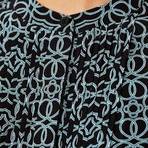 Crisp pintucks frame the covered-button placket on this patterned Tory Burch shirtdress