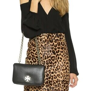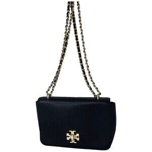 TORY BURCH Mercer Adjustable Shoulder Bag Black Pebbled Leather Gold Hardware