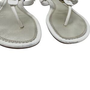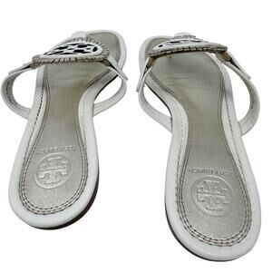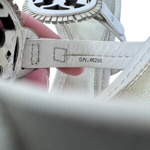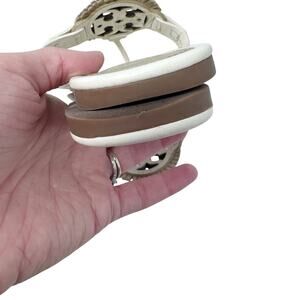 TORY BURCH Metallic Gold Cream Fringe Miller Logo Sandals Flip Flops Size 6.5
