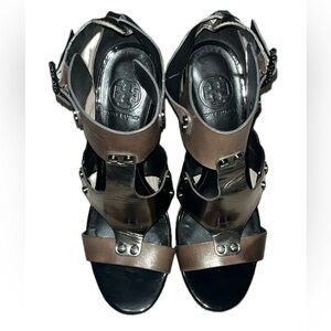 TORY BURCH Metallic Teagan Leather Caged T Strap GLADIATOR Heels 9.5M $399MSRP