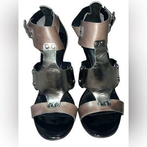 Callouts: Minor Scuffs on shoes and Discoloration in small area of straps from wear. But barely noticeable because it’s leather and metallic. See all photos before purchasing. Since the photos are a part of the description. These are preloved and still usable and very flattering.