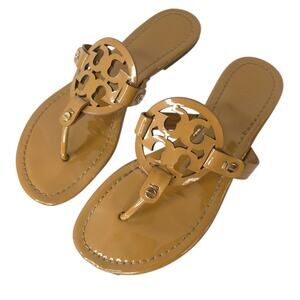 TORY BURCH Miller Sandals Tan Patent Leather Women's 8 Medium