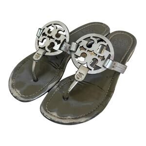 TORY BURCH Miller Signature Logo Thong Sandal Argento Silver Women’s Size 7.5