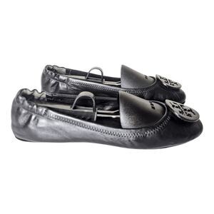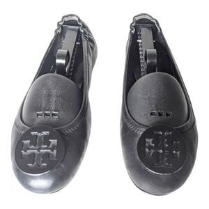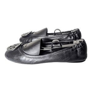 TORY BURCH Minnie Black Leather Ballet Flat Size 6M
