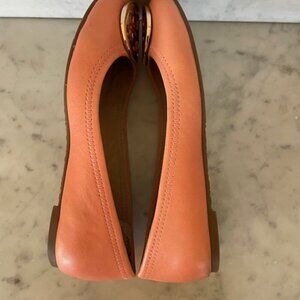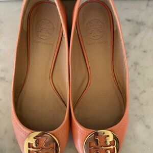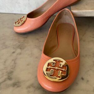 TORY BURCH Minnie Travel Ballet w/ Logo Soft Nappa Leather Sunshine 6