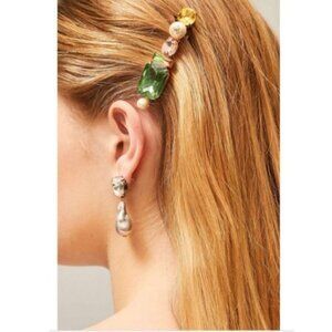 TORY BURCH • Mixed Crystal Hair Clip Pearl Barrette Logo Accessory