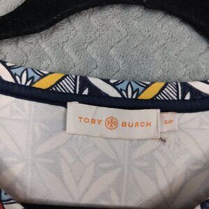 Tory Burch Multicolor Geometric Print Ponte Cropped Shirt Small Short Sleeve Stretchy comfy