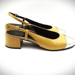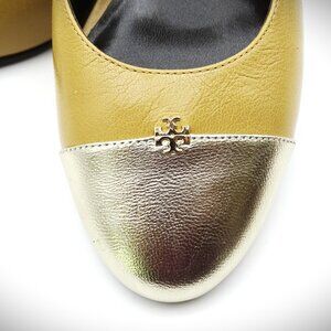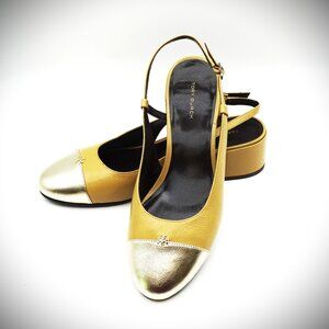 TORY BURCH NWOT Cap-Toe Metallic/Tan Slingback Pump in Black Size 8M