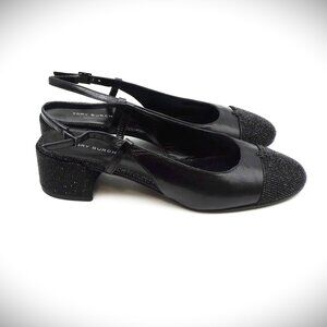 TORY BURCH NWOT Cap-Toe Pave Slingback Pump in Black Size 7.5