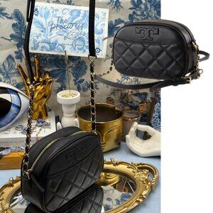 🆕 TORY BURCH 🧿 NWOT Savannah Chain Link Camera Bag Black Leather AUTHENTICATED