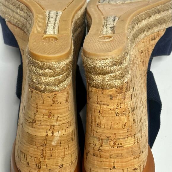 TORY BURCH Navy 2 Stretch Strap Canvas Navy Peep Toe Wedge Espadrille US 10M