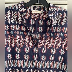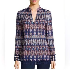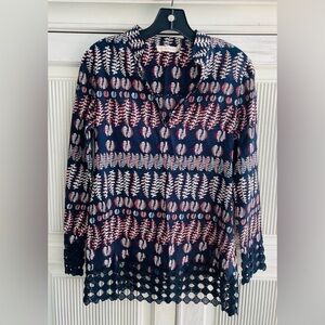 Tory Burch Navy Fern Crochet Lace Tunic Top. Size 2. Like new, excellent condition. Split neckline. Long sleeve with Navy lace crochet at hem and sleeve. Pullover style with side zipper. 100% cotton. Relaxed fit. Perfect for fall!