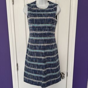 TORY BURCH Normandy Blue Petra Tweed Woven Sheath Sleeveless Dress Size 2