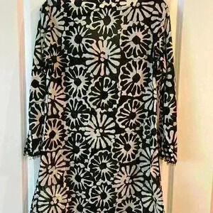Classic styles with subtle detailing are a covetable trait at Tory Burch. With a global mind-set, the Tory Burch woman is sophisticated and cultured with a soft spot for eclectic touches. The black and white floral pattern on this Pomelo beach dress recreates the look of block-printed African daisies. This dress features a v-neck, long sleeves, an empire line waist, a short length, shell-effect embellishments to the neckline and cuffs, side slits and a relaxed fit.