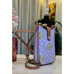 SUPER FUN AUTHENTIC TORY BURCH PURPLE & GREEN EMBOSSED LOGO CELLPHONE BAG/CROSSBODY. SOOO CUTE!!