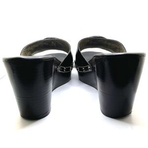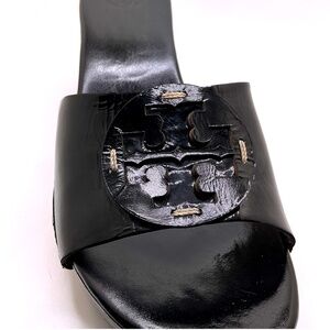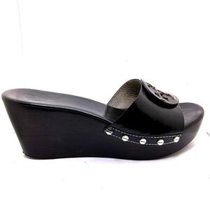 TORY BURCH Patent Leather Logo Wedge Platform Slide Sandal Black Size 10M